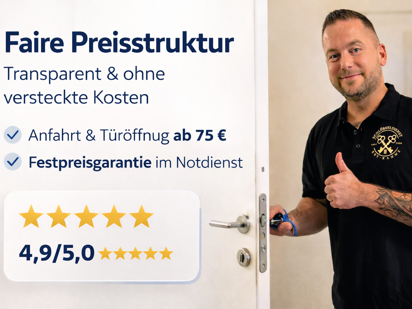 Der genaue Preis hängt von der Situation, dem Schloss und dem Arbeitsaufwand ab.
