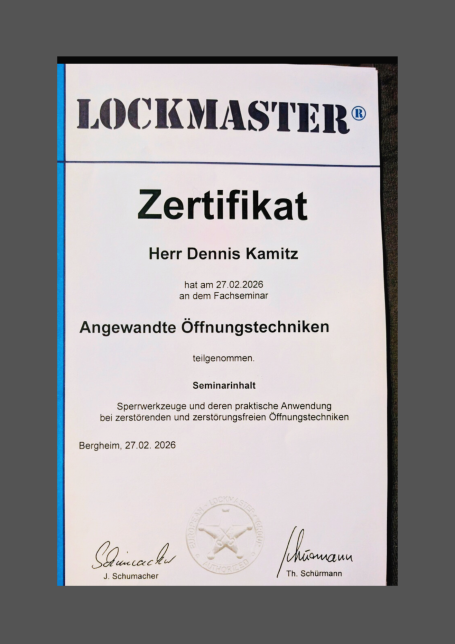 Die richtige Qualifikation ist besonders wichtig, da unsachgemäße Öffnungen schnell zu teuren Schäden an Tür, Schloss oder Rahmen führen können. Durch fachkundige Arbeit sorgen wir dafür, dass viele Türen schnell und ohne unnötige Beschädigungen geöffnet werden können.
